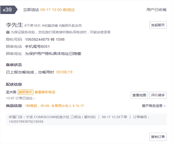 come boom轻食美团平台客户李先生复购下单18次(图1)